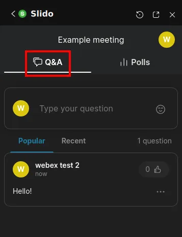 When the host activates Slido, the Slido panel will appear.
