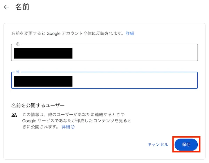 - Google Chatを利用する際や,ファイルやGoogleカレンダーの共有を行う場合に,相手に通知される姓名です.