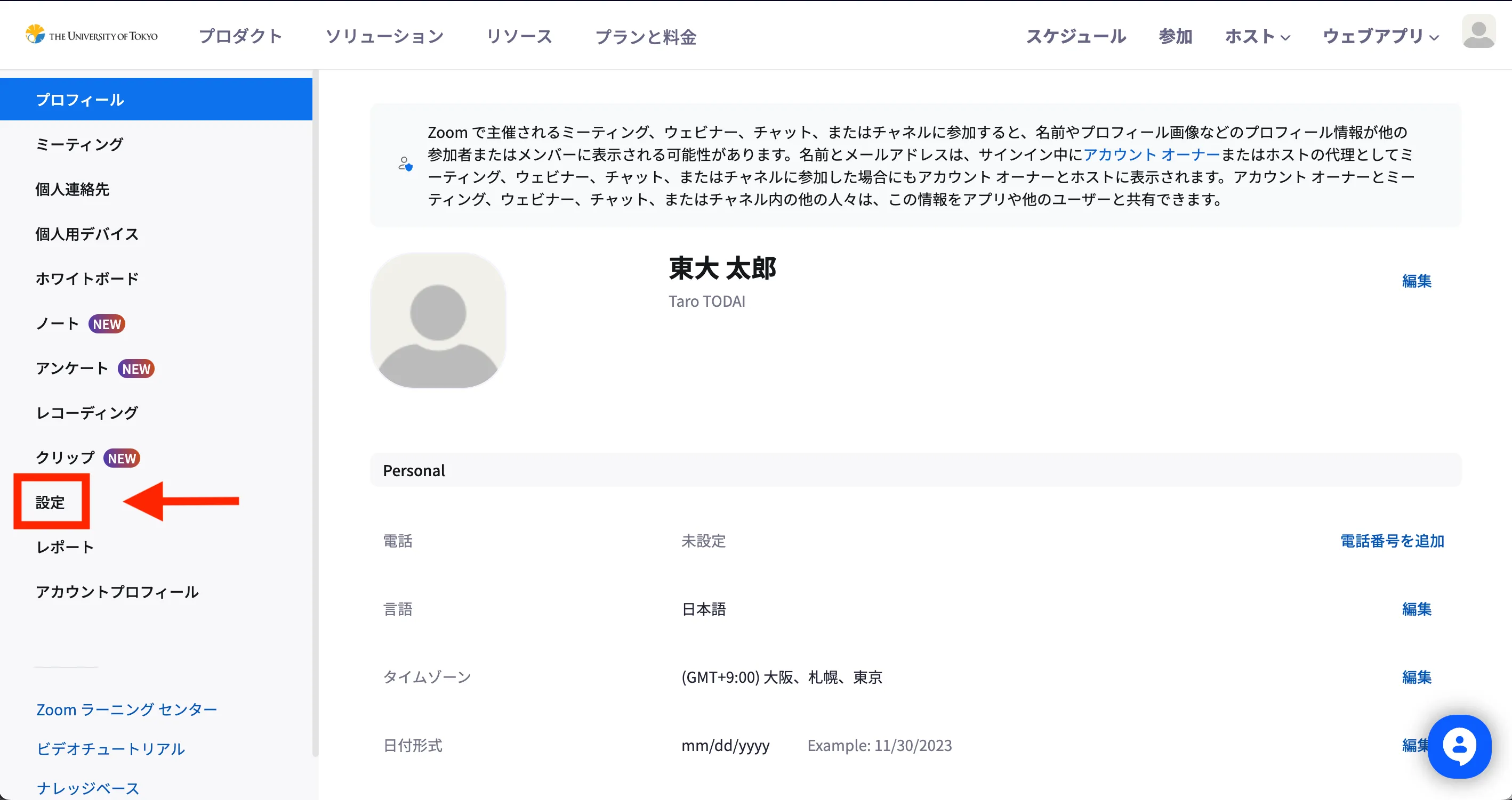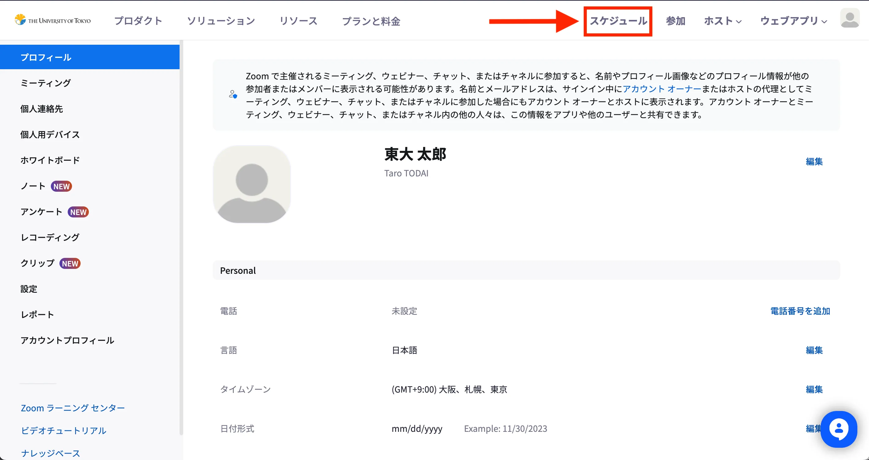- WebブラウザでZoomのマイプロフィールへアクセスしてください.